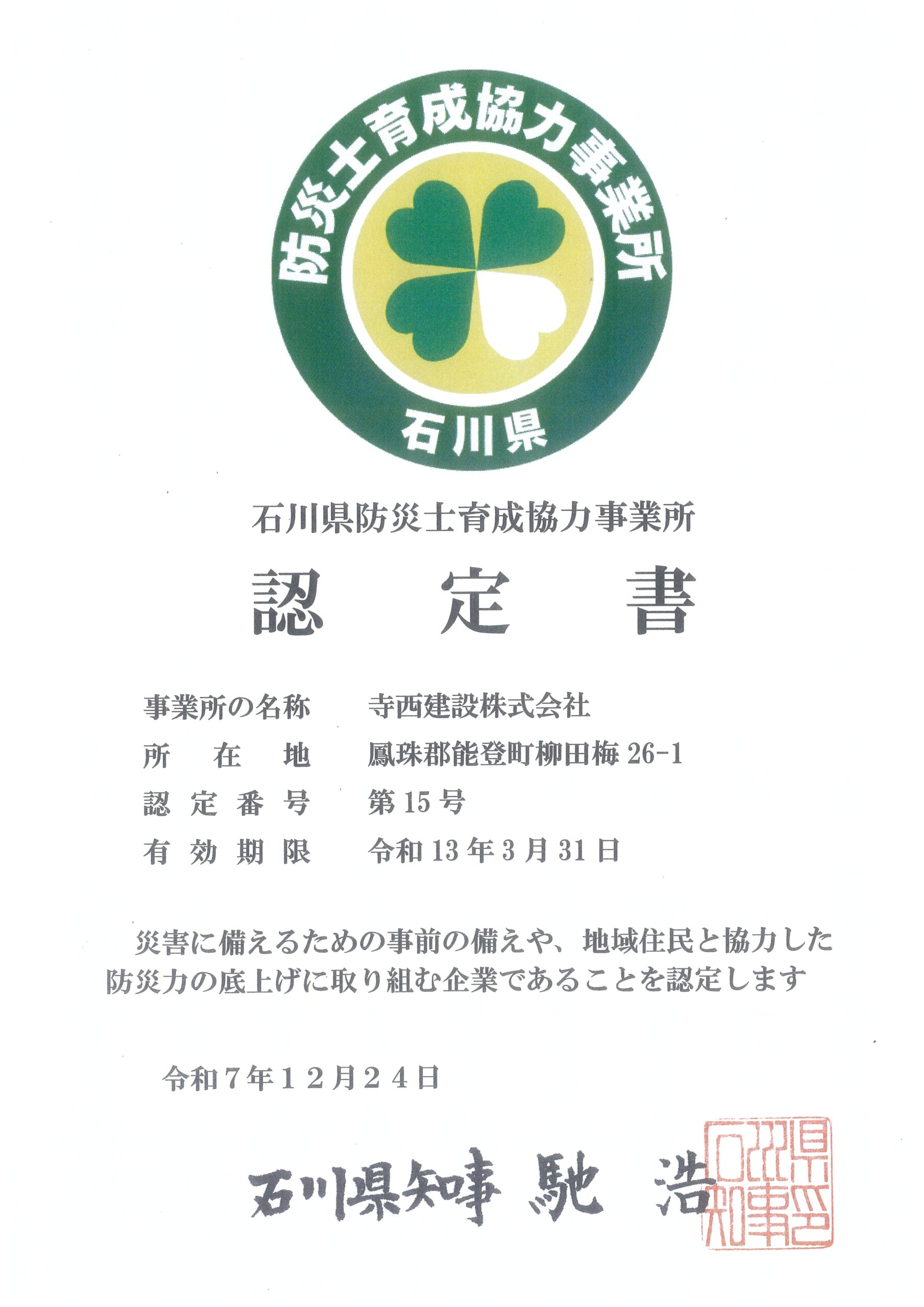 - かがやき優良企業認定